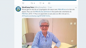 break on one of the conference days at “Wordcamp Paris#2019“, a woman addressed the above remark to me. She did it in a way that was just a little mocking. It turned out she had been mistaken for me! It’s understandable – we were two women of the same age, with the same grey hair, and both present as volunteers. In addition, each of us had given a pre-conference interview on Twitter.